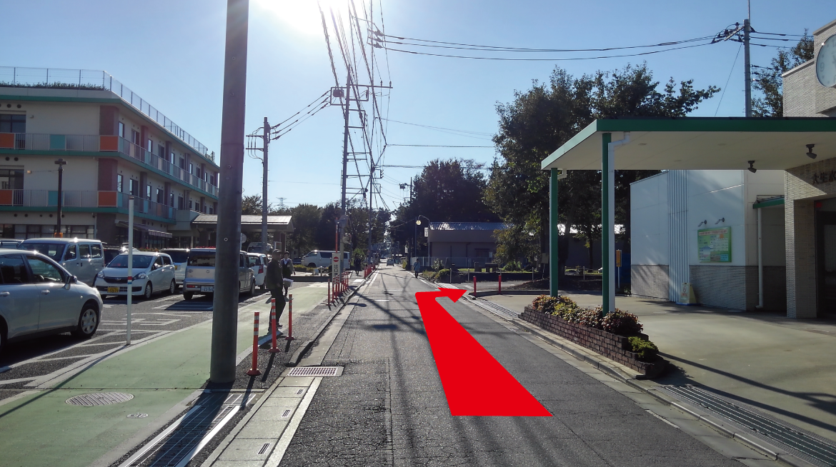 大生病院B棟前まで進みましたら写真の地点を右折してください。